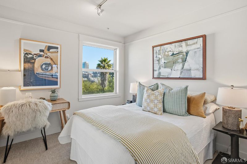 Tucked away at the peaceful back of the building, this top-floor, end-unit condo offers a level of privacy that is hard to find in one of the city's most dynamic corridors: Valencia Street. Inside, the open floor plan creates an airy living/dining area for relaxation or entertaining, complete with views of Sutro Tower. The kitchen boasts a gas stove and stainless appliances, opening seamlessly to the living room. to keep you part of the conversation. Two generous bedrooms feature ample closet space, new carpeting and paint. Strategically separated by a bathroom, these rooms offer the ultimate layout for privacy and comfort. With an in-unit washer/dryer, an oversized storage unit for all your gear, the convenience of an elevator and a premier parking spot, this home handles the logistics of city living so you can focus on the lifestyle. Enjoy a shared courtyard with multiple lounge areas, outdoor dining, and a grill perfect for relaxed open-air gatherings. Just outside your door, Valencia Street's endless lineup of world-class cafs, restaurants and boutiques await. Easy access to public transit, tech shuttles, and Dolores Park, Duboce Park, and Hayes Valley and make this location as convenient as it is connected. Experience the perfect blend of quiet comfort and urban excitement.