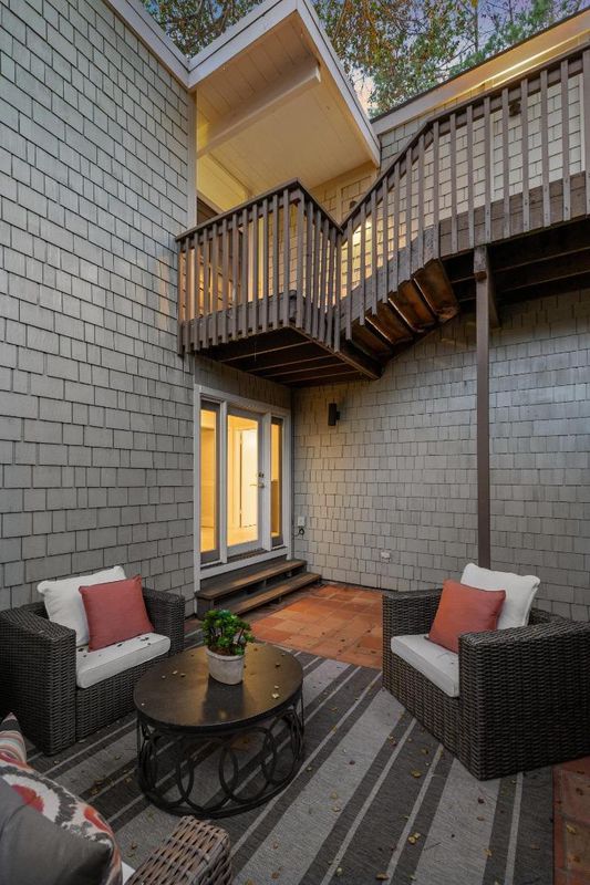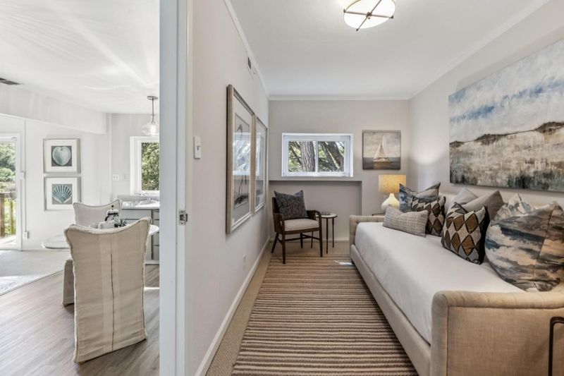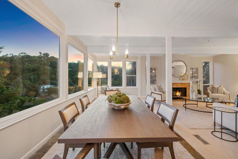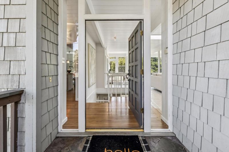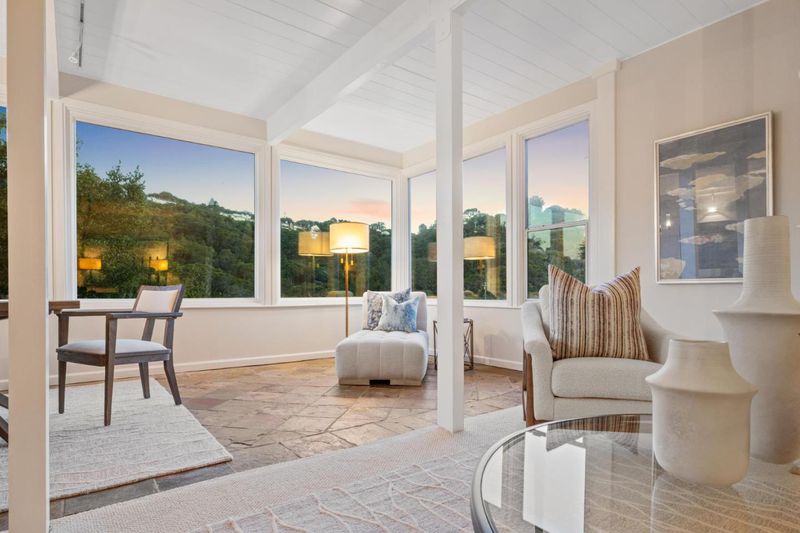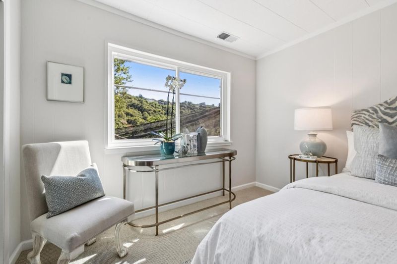 Canyon views and utmost privacy in a quiet hillside setting in the lovely Haskins Estates neighborhood. Nestled among the trees is an alluring home with a Modern Craftsman facade, and a refreshed landscape with spring flowers and a captivating approach to the front entrance. Enter the striking interior and find a large open living area with stunning views that will give you pause. Enjoy the freshly painted interior with beamed ceilings, refinished hardwood and slate-lined floors, newly carpeted bedrooms, and a bounty of sparkling windows and glass doors showcasing views, and opening to new decks with cable railings. Framed by tranquil vistas, the living and dining areas extend to the upper deck via French door, while the kitchen, with dining island, stainless appliances and casual dining area, has a sliding glass door to the same deck. Lower levels comprise four bedrooms, including a primary suite with private deck, and a flexible guest suite with private entrance. A secluded office with walk-in storage is a bonus. Balancing modern living with down-to-earth style, this home has the lure of seclusion, yet is < 3 miles from The Village, Caltrain, Hillsdale Shopping and top-rated schools.
