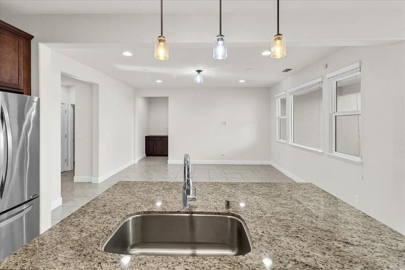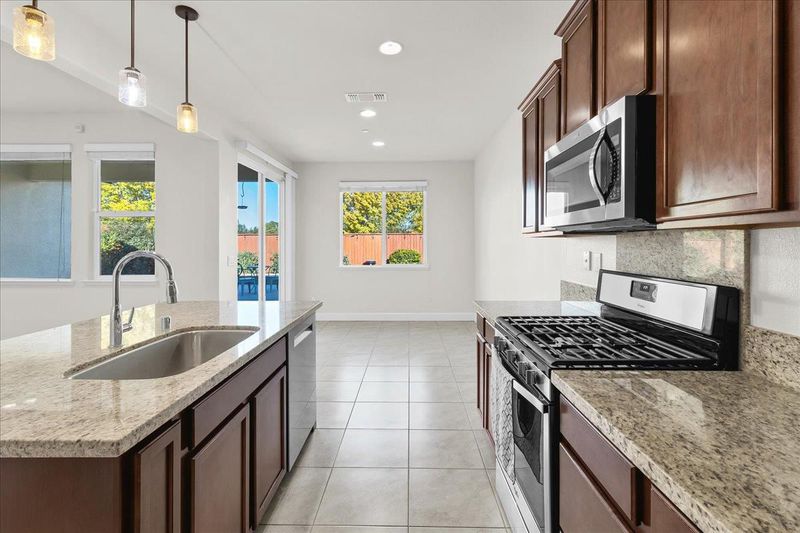 - Cooktop - Gas, Countertop - Granite, Garbage Disposal, Island with Sink, Microwave, Oven Range - Gas, Refrigerator
