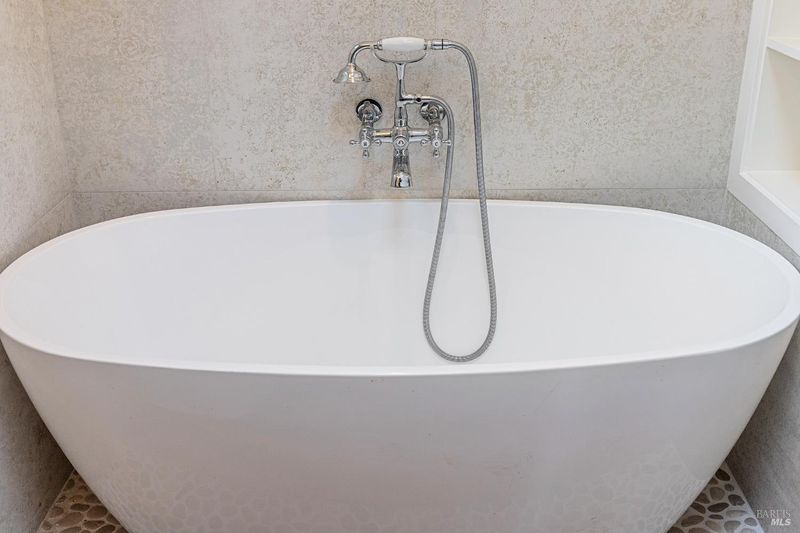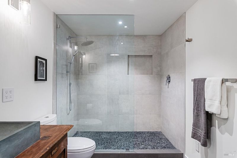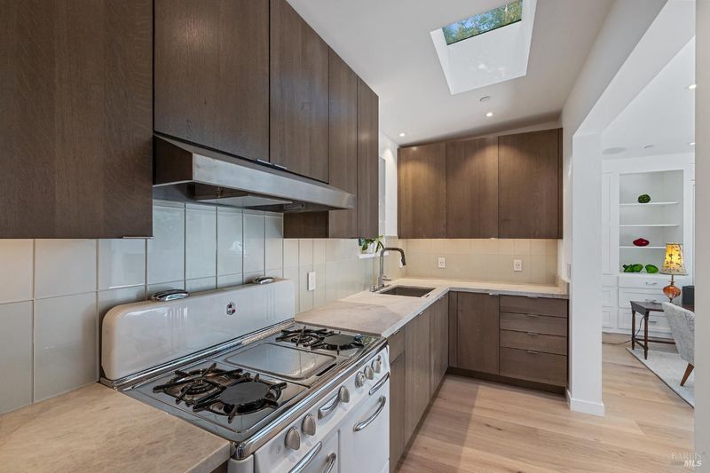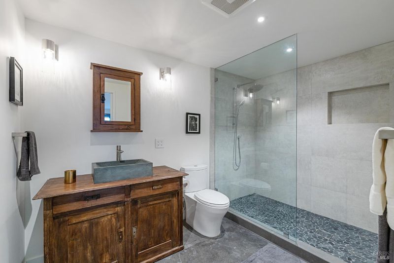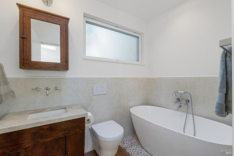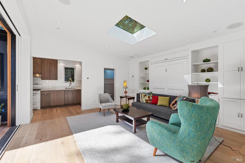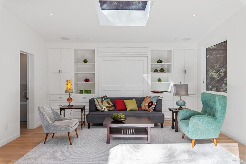 Reimagined and fully furnished turn-of-the-century cottage, just above downtown Mill Valley. 2022 down-to-the-studs renovation with designer kitchen and baths. Lower level features king bed, walk-in closet, walk-in shower, and radiant concrete floors. Upper level has hardwood floors with radiant heat throughout, spacious bath with soaking tub, high end kitchen and living room with floor-to-ceiling glass doors that connect to the private deck and outdoor space. Queen murphy bed tastefully designed into back wall converts this upper space into a 2nd bedroom if desired. Easy commute, less than 20 minutes to Golden Gate Bridge, and moments from world-class hiking, biking and recreation. Laundry in-unit. 2 car parking w EV charger. Leave the cars and walk to downtown, or hit the trails! This is the upper of 2 cottages on a large lot. Seeking long term lease; available 4/19/26.