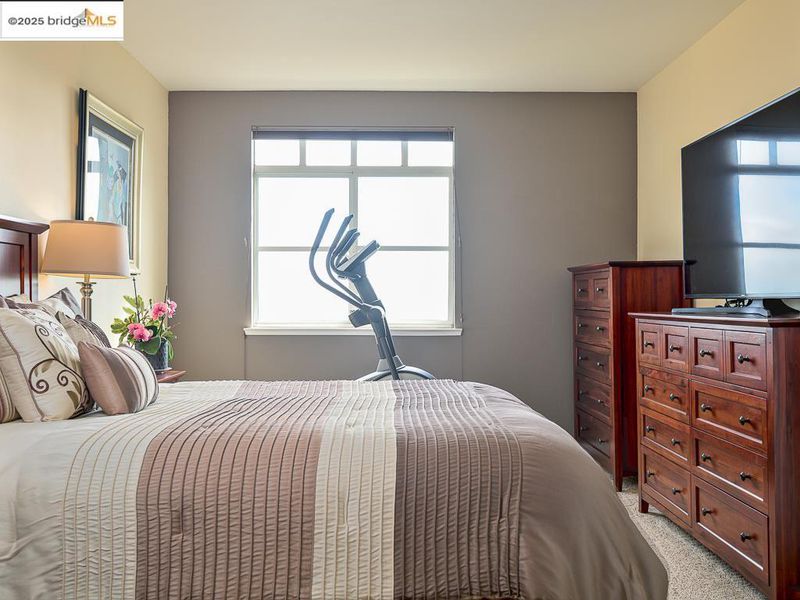 Located on the third floor of the tallest building at Brickyard Landing, this two-bedroom, two-bath condo offers spectacular views of San Francisco, the Bay, and Angel Island. Relax in the solarium as you watch sailboats glide by during the day and the city lights sparkle at night. The modern kitchen features granite countertops and wood cabinetry, opening seamlessly into a bright living-room/dining area anchored by a gas fireplace. The spacious primary bedroom boasts ample closets and an en-suite bathroom with a stall shower and a deep soaking tub. The second bedroom includes a custom built-in Murphy bed and desk, both included in the sale. Solarium and main bedroom windows have been upgraded with premium double-pane glass and new frames. Pinnacle’s expansive backyard—bordering Miller Knox Regional Park—is perfect for picnics or relaxing on the lawn. The unit comes with two parking spaces and 3 additional storage lockers. HOA amenities feature a year-round heated pool, fully equipped gym, saunas, spa, tennis and pickleball courts, a clubhouse, community garden, and EV charging stations. Commuters will appreciate easy access to Berkeley, Oakland, and Marin via I-580, as well as nearby ferry service from Richmond to San Francisco, Amtrak, and BART.
