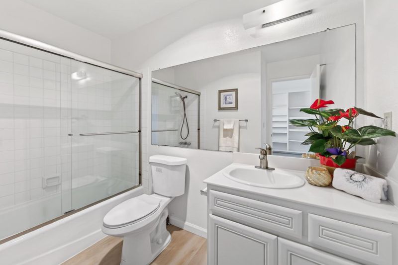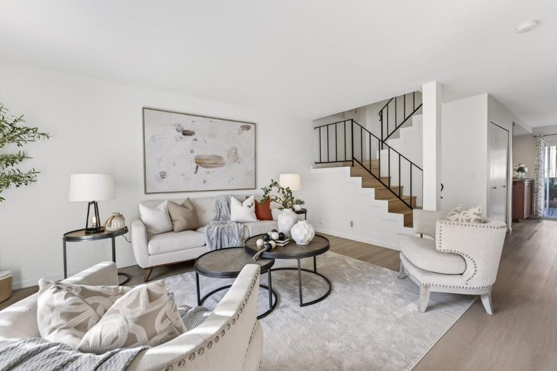 Discover comfortable living in the heart of Cupertino with this charming 2-bedroom, 2.5-bathroom home. This stunning 1,385 sf. home welcomes you with its sun-drenched living room. The kitchen is fully equipped modern amenities, including rich wood cabinetry, sleek granite countertops, a dishwasher, microwave, electric oven range, and refrigerator, all designed to make cooking and entertaining a breeze. The spacious dining room features built-in bookcases for added storage, perfect for gatherings. Upstairs, the expansive primary suite offers a peaceful retreat and large walk-in closet, while the secondary bedroom provides versatility with custom built-in bookshelves. The updated bathrooms feature clean lines and contemporary finishes with showers over tubs. Added convenience, the home offers a utility room laundry room with washer/dryer. Enjoy seamless outdoor living with a private brick-paved patio and a secondary wooden deck. This property is zoned for top-tier Cupertino School District. Community amenities include access to a pool, ideal for relaxation and recreation. With 2 garage spaces and plenty guest parking, this home is both functional and inviting, set in a vibrant city known for its tech-driven community and excellent location.