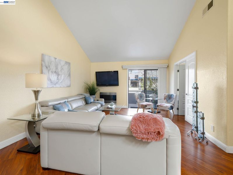 This two-bedroom plus a Den, move-in ready condo is located on the second floor in the highly desirable Waterford Community. Filled with natural light, the spacious living area features soaring vaulted ceilings, a cozy fireplace, and recessed lighting, creating an open and inviting atmosphere. The versatile den offers the perfect flex space for a home office, reading lounge, guest area, or creative studio. The updated kitchen features granite countertops and a convenient breakfast bar, ideal for everyday living and entertaining. The spacious primary suite provides a comfortable retreat, while in-unit laundry adds to the home’s functionality. Step out onto your private patio overlooking a serene pond, perfect for relaxing at the end of the day. Enjoy resort-style amenities including a pool, spa, sauna, gym, tennis courts, and beautifully maintained grounds. Ideally located near NewPark Mall, Pacific Commons, great dining options, Ohlone Newark Campus, and with easy access to I-880, Highway 84, and the Dumbarton Bridge. This unit includes covered assigned parking for added convenience. A must-see opportunity you don’t want to miss.