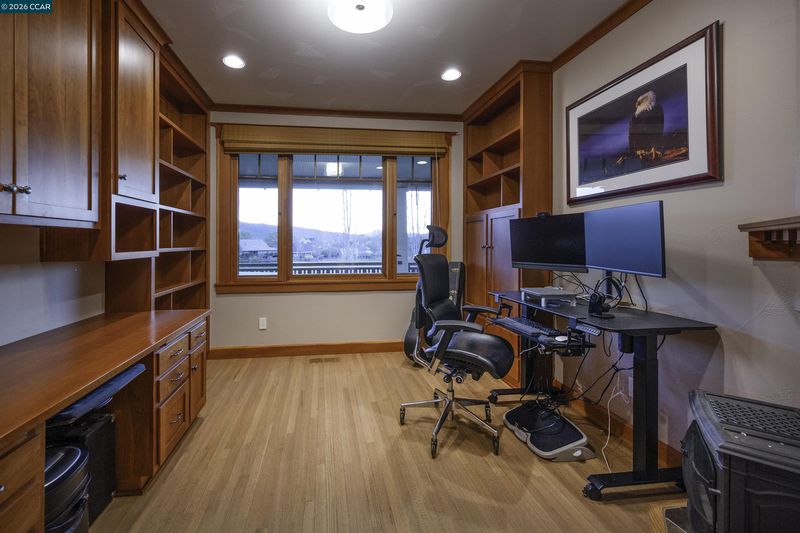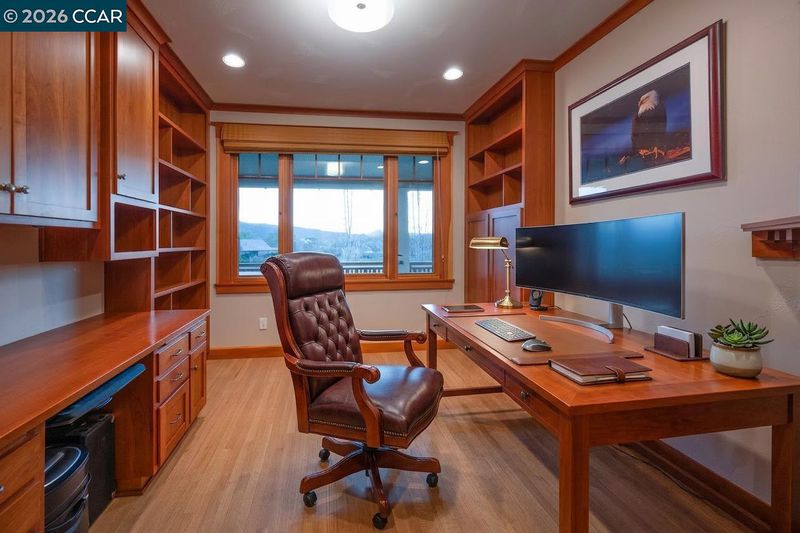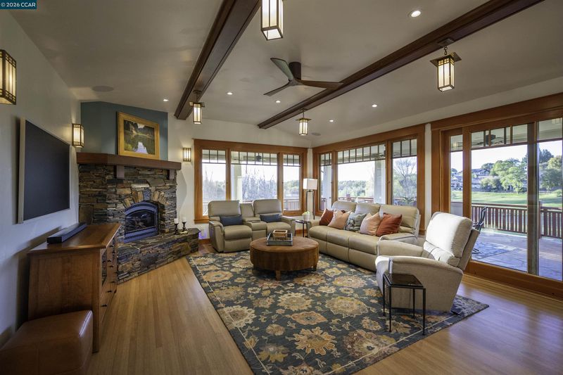 Welcome to Jewel of Greenhorn Creek! Situated on the signature 6th hole tee box overlooking a picturesque pond, this beautiful craftsman home was built in 2006 by local builder, Ron Barrett, and has only improved with age. The current owners have sweetened this property by purchasing and merging the adjacent 1/2 acre parcel with endless possibilities for a pool, pergola and outdoor entertainment area. Enjoy a peaceful golf oasis in a classic home featuring all the modern amenities that you would expect from a brand-new house, including smart lighting, owned-solar and battery backup. High quality styling including solid wood crown molding throughout. Hardwood floors throughout the home except for the smaller bedrooms. Formal dining room offers coffered ceilings, a built-in buffet and stunning glass-front cabinets. The kitchen includes a 48” GE Monogram 6-burner and griddle range, brand-new GE Monogram “Café” built-in smart refrigerator, warming drawer, additional oven, pot filler and wine fridge. Newly upgraded smart dishwasher. Primary bedroom features a retreat with a fireplace and surrounded by windows with automatic blinds, allowing you to take full advantage of the views! An office/study with built-in desk and a cozy corner stove. All bedrooms are en-suites.