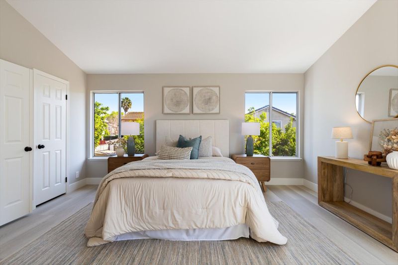 Gorgeous updated home in a desirable foothills neighborhood! This light-filled 4-bedroom, 2.5-bath residence features an ideal floor plan with high and vaulted ceilings, blending modern upgrades with comfortable everyday living. The home showcases a remodeled kitchen and bathrooms, new flooring, dual-pane windows, LED lighting, and central heating. The spacious primary suite offers a luxurious spa-like bath with an oversized soaking tub and separate shower. The updated kitchen is equipped with stainless steel appliances, gas range, quartz countertops, and new cabinetry. The inviting family room, formal dining area, and fireplace create a seamless flow for both relaxing and entertaining. Step outside to a beautifully landscaped, low-maintenance backyard featuring a concrete and brick patio and mature fruit treesperfect for outdoor gatherings. Fresh interior and exterior paint enhance the homes move-in ready appeal. Conveniently located near San Jose Country Club, Lake Cunningham Park, Eastridge Mall, shopping, dining, and scenic hiking trails. Easy access to Highways 680 & 101, Light Rail, and major Silicon Valley employers.