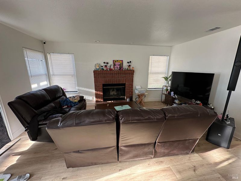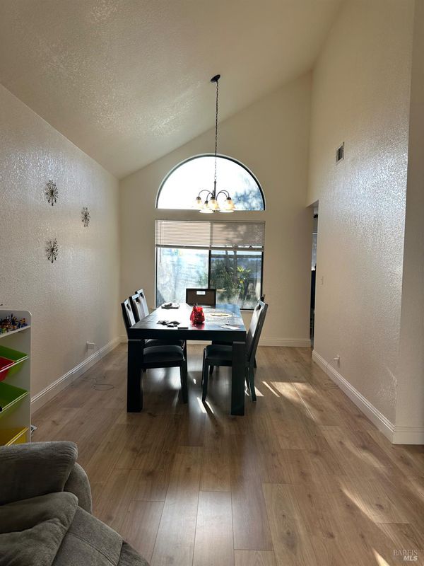 Welcome to this spacious 5-bedroom, 3-bathroom home featuring laminate flooring throughout. One bedroom and a full bathroom are conveniently located downstairs, offering flexibility for guests or multigenerational living. The bright and airy living room showcases soaring cathedral ceilings and abundant natural light from multiple windows. A formal dining area provides the perfect space for entertaining. The open kitchen offers ample counter space and flows seamlessly into the cozy family room with a wood-burning fireplace. Step outside to the backyard and enjoy breathtaking panoramic viewsideal for outdoor gatherings or quiet relaxation. Conveniently located near top-rated schools, shopping, easy freeway access to I-80, and Travis Air Force Base.
