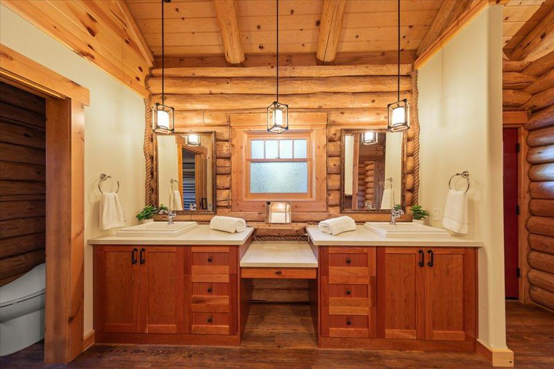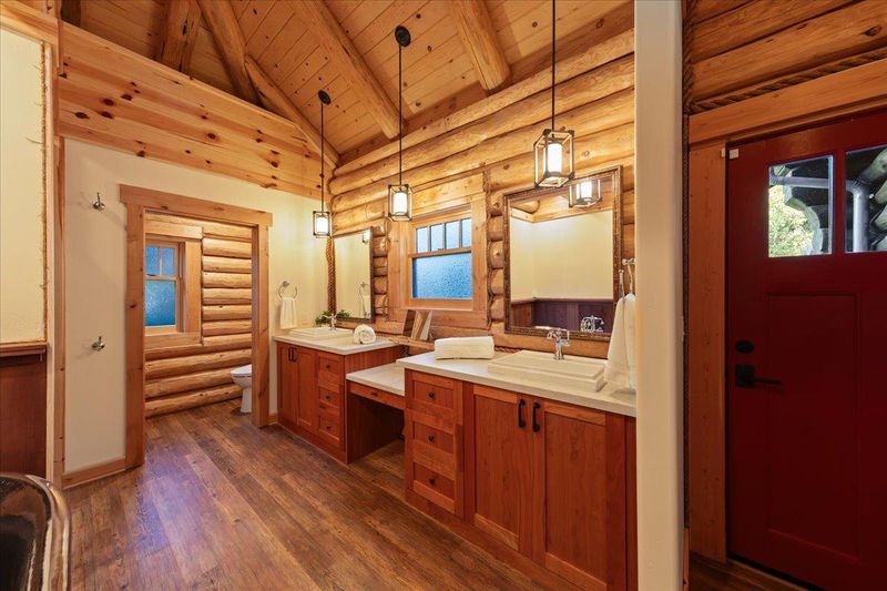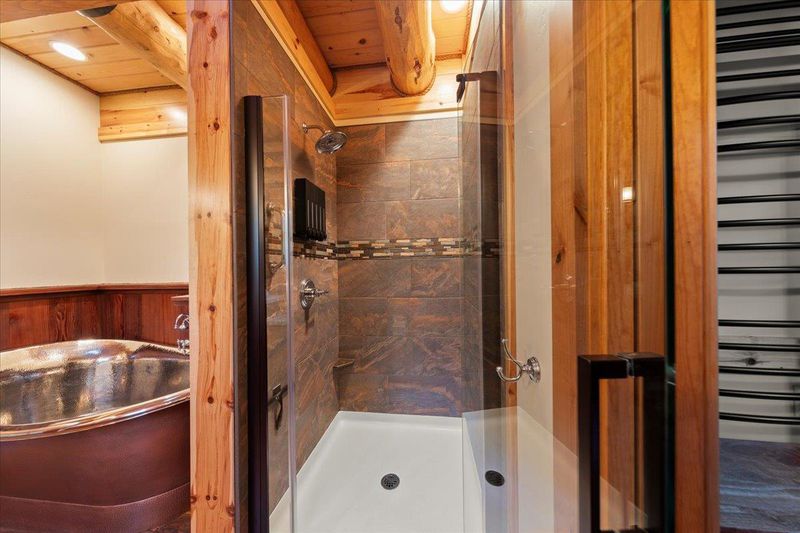 - Double Sinks, Shower and Tub, Skylight, Split Bath, Stone, Full on Ground Floor, Showers over Tubs - 2+, Primary - Oversized Tub, Primary - Stall Shower(s)