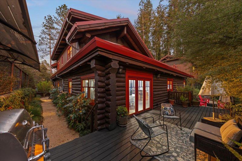 44 Pine Ave, Mount Hermon. Custom luxury log home built in 2021. 4BD/3BA main residence plus fully permitted 2BD/1BA ADU, totaling 6 bedrooms and 3,282 sq ft +/- of livable space. Set among towering redwoods in one of the Santa Cruz Mountains' most coveted private enclaves, Mt. Hermon offers scenic trails, peaceful redwood streets, and a park-like atmosphere worlds away from Silicon Valley yet less than an hour via Hwy 17. Mt. Hermon property owners receive exclusive resident access to the recreation campus: free summer trails, meadows, sports courts, game room, plus discounted Redwood Canopy Tour, Sequoia Aerial Adventure, and pool. Main residence features open beam ceilings, vaulted great room, stone gas fireplace, radiant floors, ground-floor primary suite with oversized tub, stall shower, walk-in closet, quartz kitchen with island and pantry. ADU above 3-car garage includes workshop and EV Level 2 hookup ideal for multigenerational living, guests, or income. Outside: deck, fire pit, BBQ, fenced yard, gray water system. Metal roof, fire sprinkler, video/audio security, Energy Star appliances, tankless water heater. Walk to trails. Minutes to Pasatiempo Golf. Silicon Valley via Hwy 17 under one hour. Priced below automated valuation and well below replacement cost!