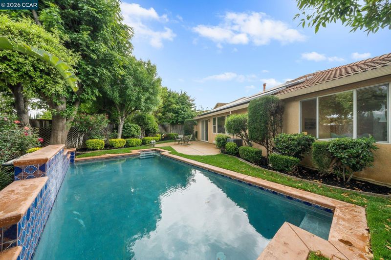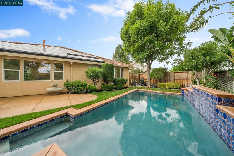 Welcome to Sanger Peak. This single-story home offers a layout that stands out, featuring a spacious separate wing with a large fourth bedroom—ideal as a second primary suite, private guest quarters, or its own living space. A welcoming entry and beautiful courtyard create a true indoor-outdoor connection, bringing in natural light and adding a unique focal point to the home. The floor plan flows easily between living spaces, making it both functional and comfortable for everyday living. Freshly painted and move-in ready, the home offers a clean, updated feel throughout, along with solar for added efficiency. Step outside to a private backyard designed to be enjoyed. A saltwater pool with waterfall features is surrounded by mature landscaping and patio space, creating the perfect setting to relax or entertain. Flexible, functional, and designed for the way people actually live—this home checks all the right boxes.