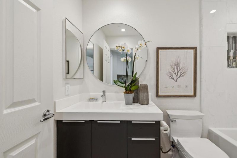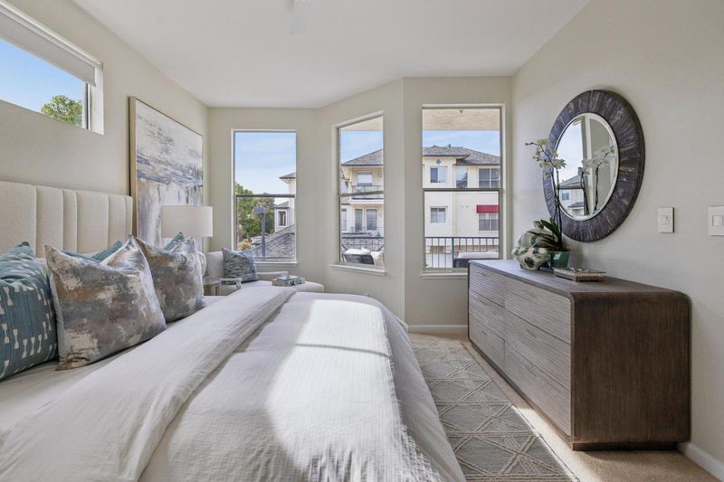 Updated modern condominium in Ventana del Mar on Redwood Shores Lagoon. Featuring a sought-after split-bedroom floor plan, this unit with two bedrooms and bathrooms centers on an open-concept living space. The open living and dining areas enjoy the warmth of a cozy fireplace and cool breeze from the balcony. The streamlined kitchen, boasting chic cabinets, quartz counters, and stainless steel appliances, overlooks the living space via a dining counter, perfect for entertaining. The primary suite offers a serene retreat with an array of windows and reading nook, a modern bathroom with double-sink vanity, and a walk-in closet with Elfa storage. A second bedroom with an adjacent bath, plus in-home laundry, adds ultimate convenience. Residents enjoy resort-style amenities, including a waterside pool, spa, fitness center, clubhouse and access to shoreline walking paths. Come live the dream!