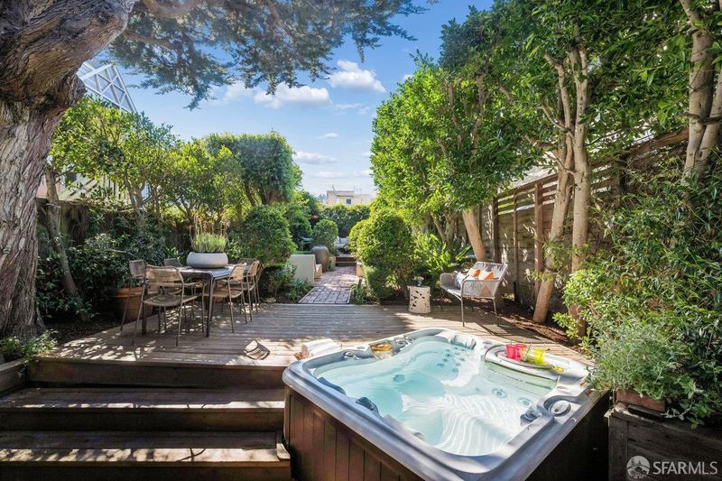 Step into this Meritorious Castro Victorian! First time on the market in 35 yrs. Lovingly cared for & updated by its owners. A Stick Victorian With 10' ceilings, wood floors, original detail and an enviable landscaped walk out garden on a large flat lot. The 1st flr has a double sized living room w/10+foot ceilings, a formal dining room,2 Peter Mangan glass/metal light fixtures, a pendant in the vestibule & chandelier in the dining room. The LR has a fireplace, lush hardwood floors and a Berkeley Mills custom entertainment center. Continuing to a large kitchen/a Monogram 6 burner gas range, paneled refrigerator/freezer, Advantium speed cook oven, convection oven, Bosch dishwasher & warming drawers + Instant hot & filtered taps. The Island has additional storage & a wine cooler, illuminated art boxes punctuate the kitchen with its stone, stainless & storage! The breakfast room has another custom built in entertainment cabinet and a full bath. The French doors open out onto a large deck w/ hot tub and then continue to expand on this 125' (per tax records) lot. With a large Monterey Cypress tree and 20 perimeter Ficus trees (appx 25' tall) to provide the ultimate in privacy. The upper level has three bedrooms (one is currently used as an office) and two baths. The huge primary suite on the garden side of the home has a walk-out deck, beautifully remodeled bath with heated marble floors, towel warmer, 2 separate sinks/vanities and a large shower. The suite is finished with a custom Berkeley Mills built-in floor to ceiling (African Sapele & Honduras Mohogany) tansu style closet-dresser-entertainment center. Double paned windows and a sliding door for access to deck. The second bedroom also has double paned windows, and direct access to the second full bath which is perfect for friends/ family. The third bedroom is currently used as a home office for two, with custom built-in cabinetry, a cedar closet, shelves, file cabinets and two desks. This room could be converted back to a proper bedroom. The garage/basement level has parking for 2 cars, a very high ceiling and an enormous amount of storage, along with laundry area with Samsung washer/dryer. Steps to the heart of Castro Village, Muni, Commuter busses, Eureka Valley dog park, The Famous Castro Theater and Mollie Stone's market. Are you ready to steward this Architectural beauty into its next chapter?