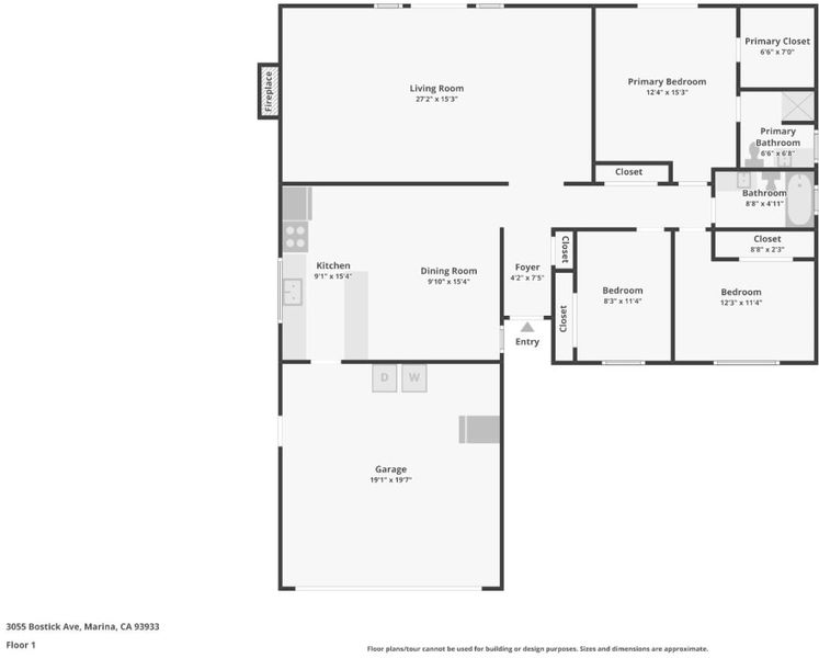 Welcome to this beautifully maintained 3-bedroom, 2-bath home offering approximately 1,500 sq ft of comfortable living on a generous 7,200 sq ft lot. Bathed in sunlight from front to back, this property is designed for both everyday comfort and effortless entertaining. Enjoy expansive outdoor spaces featuring lush gardens, mature fruit trees, vibrant springtime flowers, and a relaxing hot tub perfect for barbecues, gatherings, or quiet evenings under the stars. Inside, the home offers warm wood flooring, a spacious living room with a fireplace, and French doors that open to the backyard, creating seamless indoor-outdoor flow. The large eat-in kitchen provides ample space for cooking and hosting. The primary bedroom includes a walk-in closet and sliding glass doors with built in blinds that lead to the outdoors and the hot tub, offering a private retreat. Additional highlights include an owned solar tile roof, a two-car garage, close to beaches, shopping, restaurants and all that Marina and the Monterey Peninsula has to offer. This is a rare opportunity to enjoy sunshine, space, and lifestyle in one of Marinas most sought-after areas.