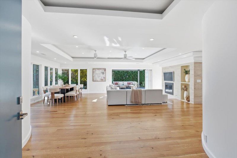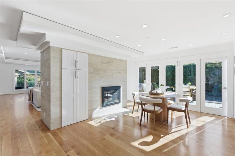 Custom 4-bed, 2-bath home showcasing thoughtful design, quality craftsmanship, fresh interior paint, & beautiful hardwood floors. The expansive living room is filled with natural light & opens through bi-fold doors to a large backyard deck, overlooking the sparkling, fenced swimming pool. The remodeled kitchen features glass composite countertops, white subway tile backsplash, farmhouse sink, & high-end appliances. Custom details are found throughout the home, including coffered ceilings, recessed lighting, and a see-through tiled gas fireplace. A versatile bonus room offers flexible space ideal for a home office or pool room. Both bathrooms are true showpieces with modern design & elegant tilework. The primary suite offers a spa-like retreat with an oversized open shower, soaking tub, double sinks, custom tile finishes, & heated floors. Additional highlights include a tankless water heater, owned solar system, rainwater collection barrel, extra attic storage, durable Ipe hardwood accents, drought-tolerant native landscaping, mature plum, blackberry, and blueberry plants. Located in a welcoming neighborhood known for its annual 4th July block party and Halloween potluck, this home offers a rare blend of custom design, indoor-outdoor living, sustainability, & community charm.