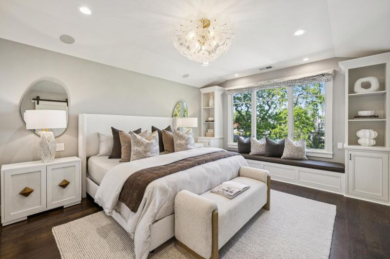 Tucked away on a quiet cul de sac in Menlo Park's Sharon Heights neighborhood, this renovated & turnkey residence offers a rare blend of privacy, style & exceptional indoor-outdoor living. Ideally located near Stanford, Sand Hill Rd & Hwy 280, the home provides convenient access to leading Silicon Valley tech campuses. The property showcases inviting curb appeal with manicured landscaping, fruit trees & turf lawn. The main residence offers 4 bedrooms & 2.5 baths. A separate bonus suite with full bath & private exterior entrance provides flexible use as an office, au pair or guest quarters. At the center of the home, a spacious kitchen-family great room with vaulted ceiling creates a warm & inviting gathering space. The chef's kitchen features stone counters, Carrara marble island, walk-in pantry & premium appliances including Wolf & Sub-Zero. The private bedroom wing includes a primary suite with double sink vanity & walk-in closet, plus three additional bedrooms served by a hall bath. The backyard is a standout, featuring Connecticut bluestone hardscape, covered loggia with heaters, outdoor kitchen with Lynx BBQ, fire pit, in-ground spa, turf lawn & putting green, all surrounded by mature hedging for privacy. Acclaimed Las Lomitas school district & near top private schools.