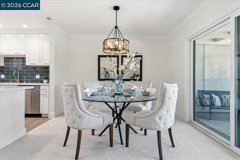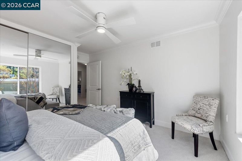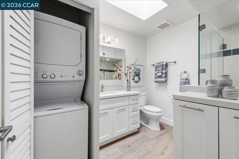 Experience refined living in this beautifully updated Sequoia co-op, where sophisticated style meets serene natural surroundings. Enjoy sweeping tree-lined and hillside views from your private open balcony, the perfect place to unwind. Inside, the home shines with fresh paint and plush new carpeting, complemented by a thoughtfully redesigned custom kitchen featuring crisp white cabinetry, quartz counters, striking blue subway tile backsplash, and sleek stainless-steel appliances. The elegant, white-tiled bathroom offers a modern stall shower, skylight for abundant natural light, and the convenience of an in-unit stacked washer and dryer. Dual pane windows, solid core doors, closet organizers with mirrored doors , crown and base moldings, and smooth ceilings add to the luxurious feel! Ideally situated for both relaxation and recreation, this home is just moments from Rossmoor dining, social venues, and amenities, including the nearby Event Center, Stanley Dollar clubhouse and swimming pool, fitness and sports facilities, scenic hiking trails, and so much more. Welcome to your new Rossmoor lifestyle!