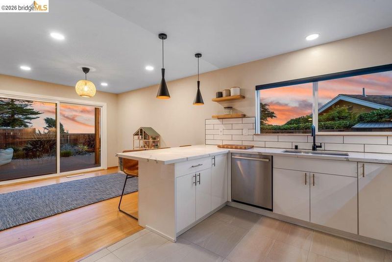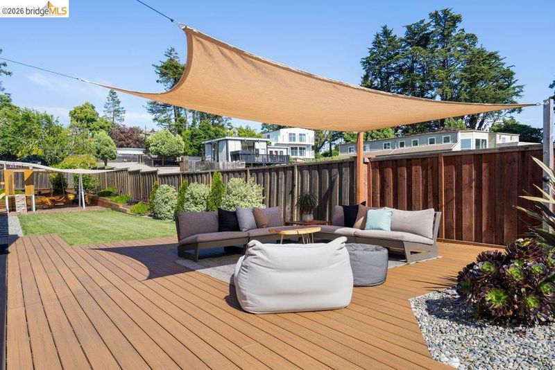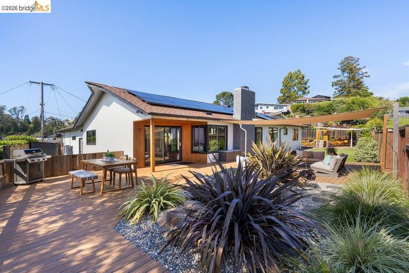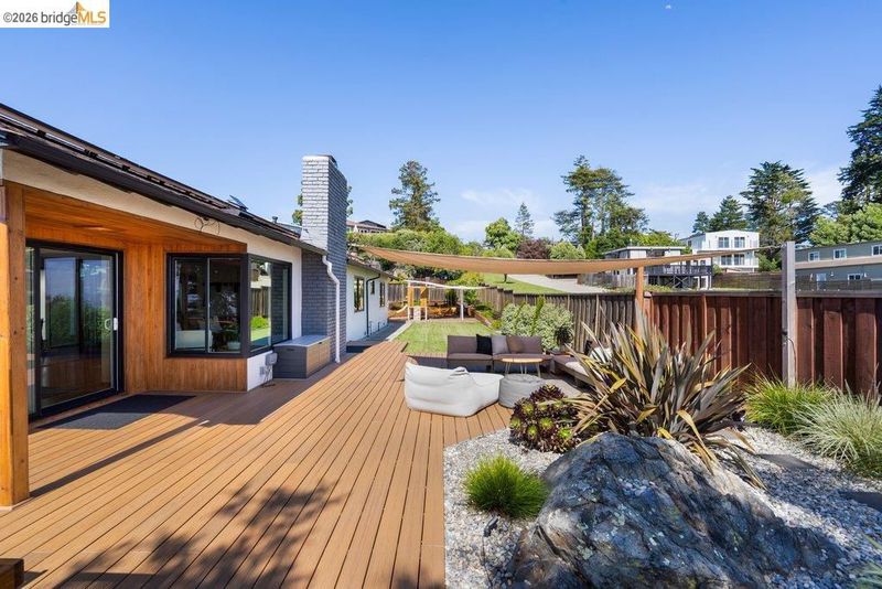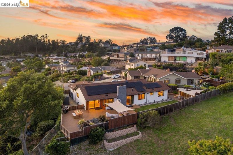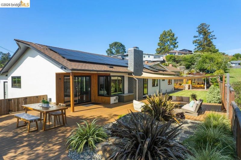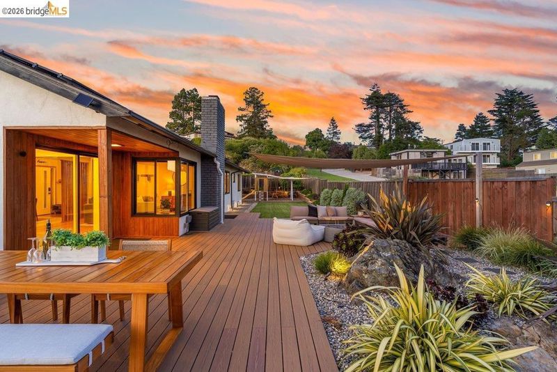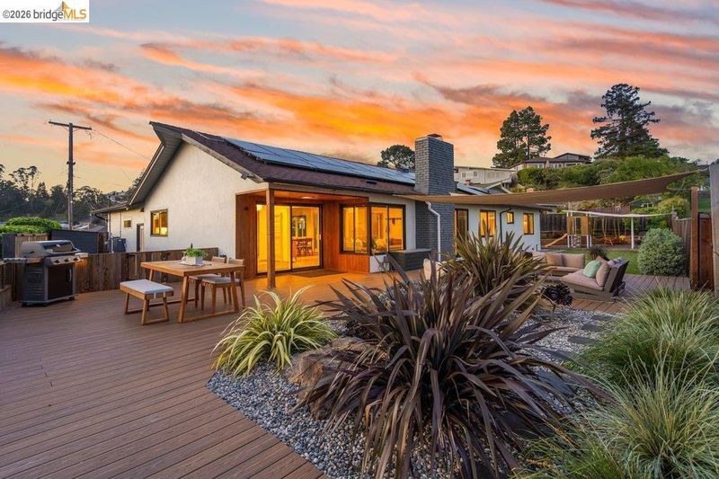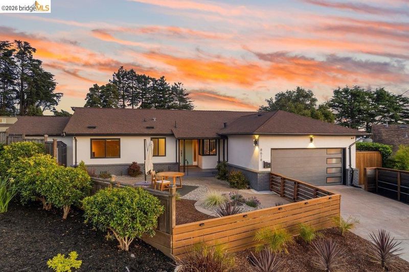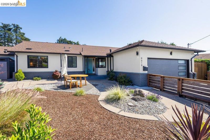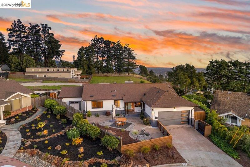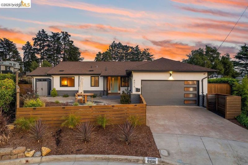 Welcome to 8618 Edgehill Court in El Cerrito, a beautifully remodeled level-entry home offering 1,648 square feet of bright, airy living space with three bedrooms and two bathrooms. Showcasing classic Mid-Century architecture and a flexible floor plan, this home features hardwood floors, two dining areas, and a stylishly updated kitchen and bathrooms designed for modern living. Enjoy sweeping four-bridge bay views that include the iconic Golden Gate Bridge and the skyline of San Francisco. The spacious backyards made for entertaining, with multiple areas perfect for family gatherings and celebrations- this home truly invites you to throw a party. Complete with a finished two-car garage and conveniently located near bus routes, Arlington Park, and scenic hiking trails, and zoned for Madera Elementary School. Twilight Open Friday 5/1 5-7pm and Saturday and Sunday open houses 5/2, 5/3, 5/9 ad 5/10 2-4:30pm.