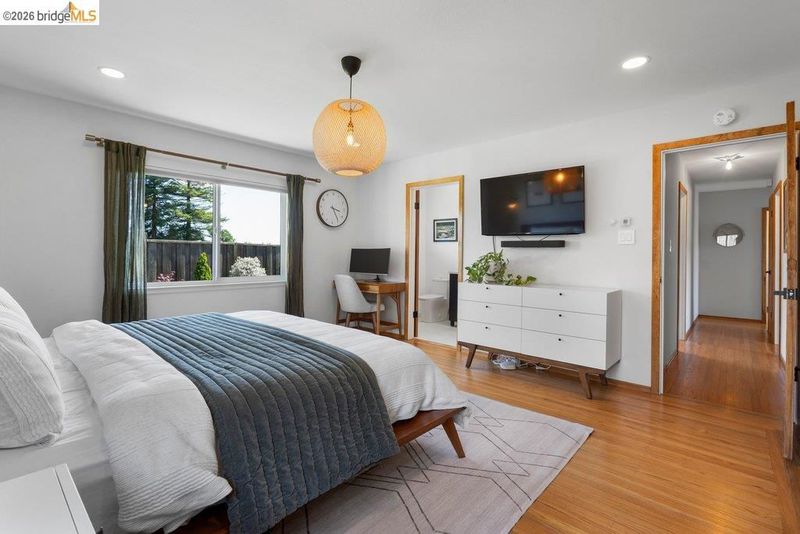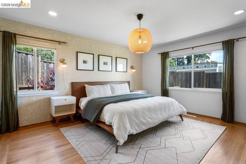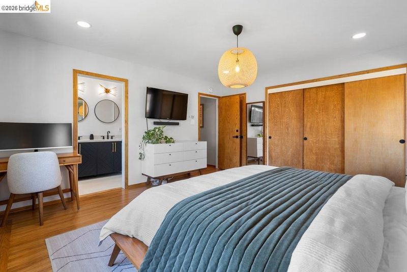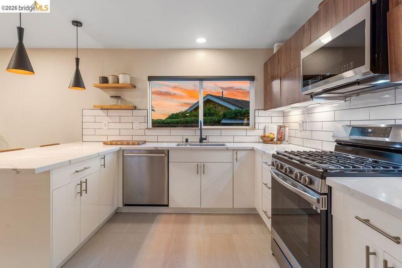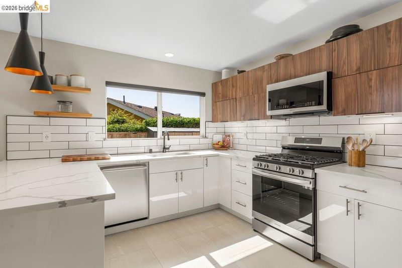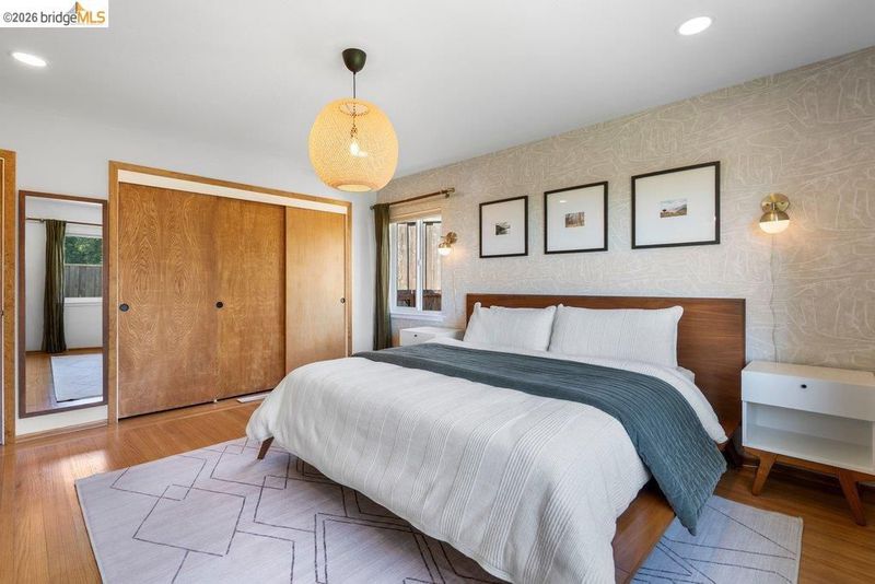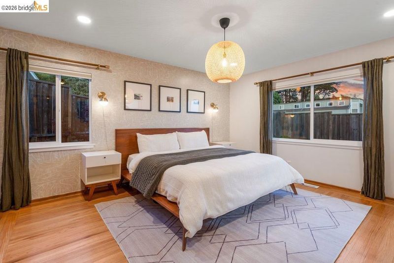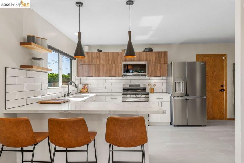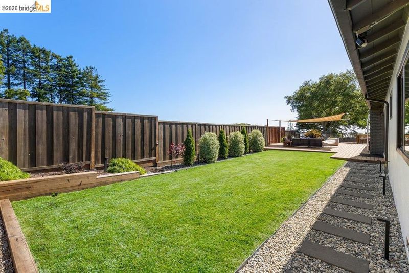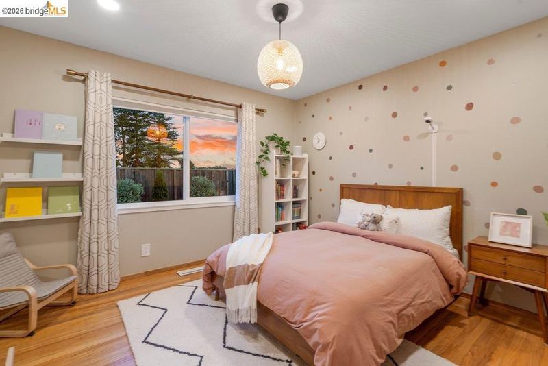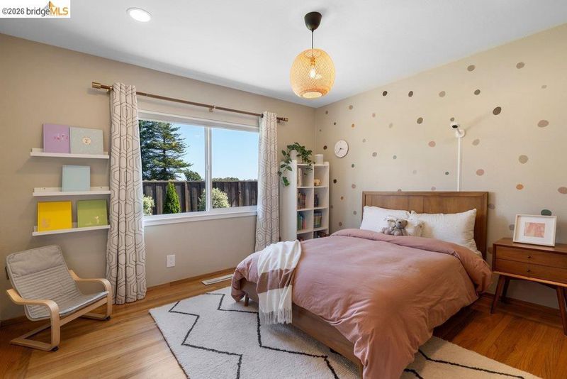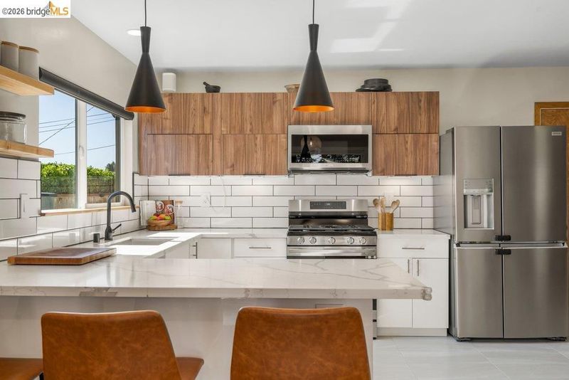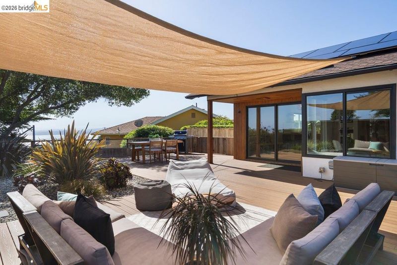 Welcome to 8618 Edgehill Court in El Cerrito, a beautifully remodeled level-entry home offering 1,648 square feet of bright, airy living space with three bedrooms and two bathrooms. Showcasing classic Mid-Century architecture and a flexible floor plan, this home features hardwood floors, two dining areas, and a stylishly updated kitchen and bathrooms designed for modern living. Enjoy sweeping four-bridge bay views that include the iconic Golden Gate Bridge and the skyline of San Francisco. The spacious backyards made for entertaining, with multiple areas perfect for family gatherings and celebrations- this home truly invites you to throw a party. Complete with a finished two-car garage and conveniently located near bus routes, Arlington Park, and scenic hiking trails, and zoned for Madera Elementary School. Twilight Open Friday 5/1 5-7pm and Saturday and Sunday open houses 5/2, 5/3, 5/9 ad 5/10 2-4:30pm.