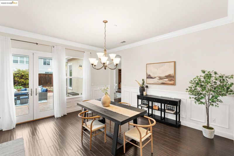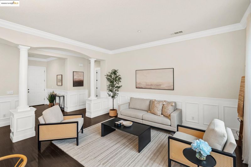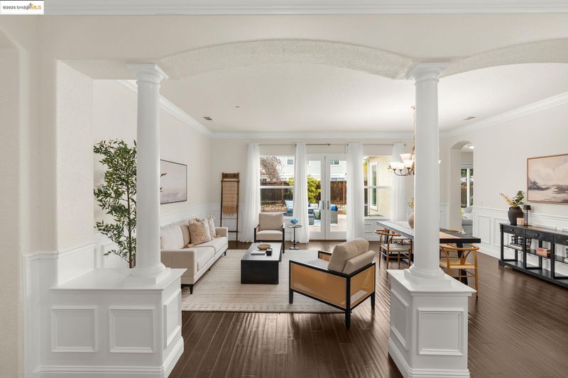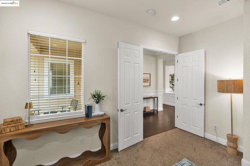 As you arrive, the lengthy driveway and corner-lot setting welcome you into this beautiful single-story home in Brentwood’s Rose Garden. Inside, high ceilings and elegant Pulte finishes; wainscoting, crown molding, and elegant pillars that create a warm, refined atmosphere. A front office/den and formal living and dining rooms with French doors to a private courtyard set the stage for entertaining. The open kitchen flows seamlessly into the family room and features granite countertops, maple cabinetry, a center island, and stainless-steel appliances. The family room is highlighted by a gas fireplace with custom wood mantle and built-in entertainment center. The private primary suite offers a soaking tub, walk-in closet, and backyard access, while three additional bedrooms plus a bonus office provide flexibility. Enjoy a low-maintenance backyard, 3-car garage, fully owned solar, community pool, nearby parks, and a location surrounded by top-rated schools.
