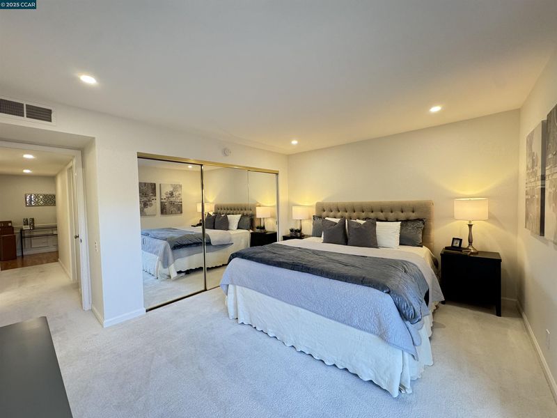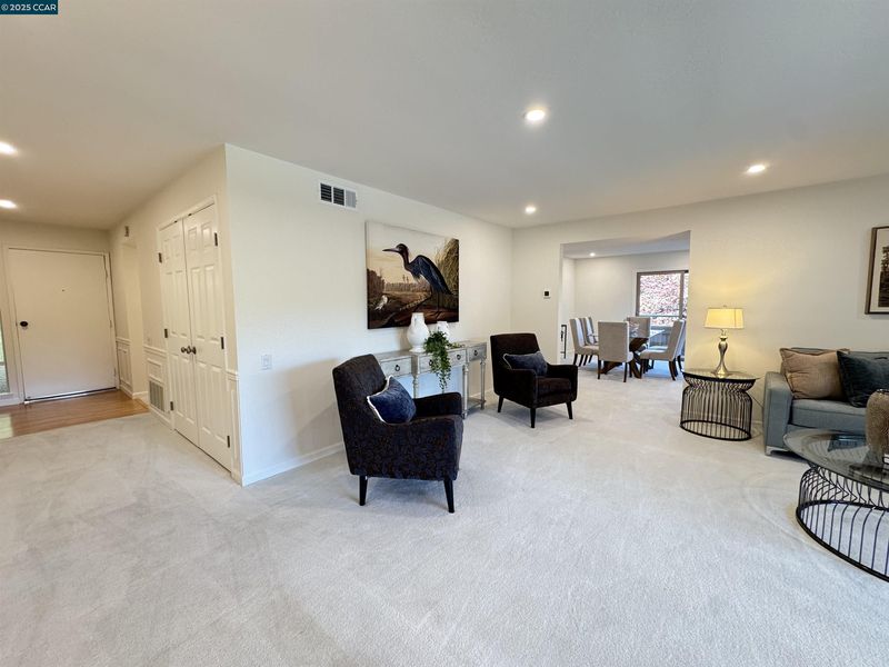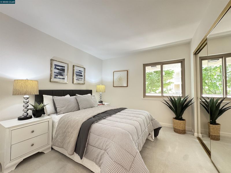 Popular Villa Barcelona plan in Walnut Creeks prestigious Rossmoor gated community. Rarely available being all on one level, no stairs, steps, or curbs from your parking space to your home and no steps or stairs inside the home. Light filled updated kitchen with eating area and a nice view of the hills. Formal dining room, very spacious living room with roomy deck and incredible views. Master bedroom also has its own private deck and beautiful views. Newer carpet. Two full updated bathrooms. Inside laundry. Lots of closet and pantry space. Ample guest parking. Beautiful Courtyard in front with fountain and lush landscape. Rossmoor’s extensive amenities, including golf courses, swimming pools, pickle ball courts, and tennis courts, all fostering a vibrant and active community life. Located just minutes from downtown Walnut Creek’s shopping and dining. Welcome Home!