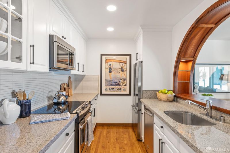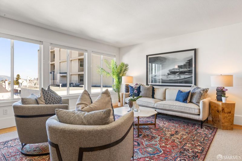 Experience a rarely available open-concept floor plan at 1818 Broadway #206, where glistening San Francisco Bay views take center stage. Located in the heart of Pacific Heights, this large condo offers a seamless flow between the kitchen and living areas, anchored by striking architectural details. A freshly painted interior creates a crisp backdrop for the custom arched breakfast/bar and the custom-finished Italian plaster fireplace. This residence is generously proportioned and thoughtfully designed for modern living. Every detail has been meticulously refreshed, from the newly renovated bathroom to the contemporary kitchen equipped with premium appliances including a Fisher & Paykel refrigerator. The layout features a grand rear primary bedroom that serves as a quiet sanctuary, in addition a separate dedicated office provides the ideal work-from-home environment. The property is further enhanced by a spectacular view roof deck, large parking spot, private storage unit and exceptional closet space. Step outside to discover the very best of San Francisco living. Just moments away is renowned Lafayette Park, the boutiques and world-class dining corridors of Fillmore Street, Union Street and Upper Polk. This is more than a home; it is an invitation to an exciting lifestyle in one of the city's most coveted neighborhoods. HOA dues of $731 (includes water, garbage, professional property management, and maintenance).