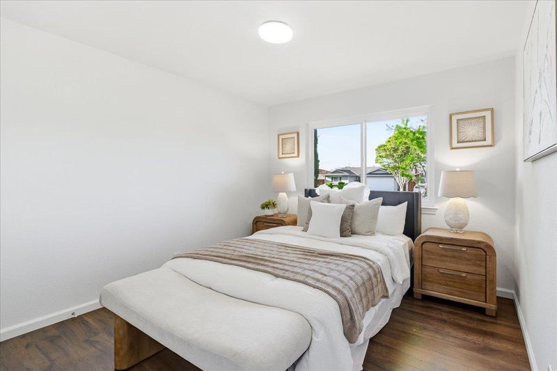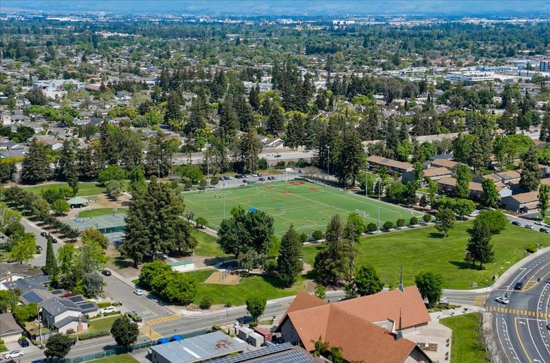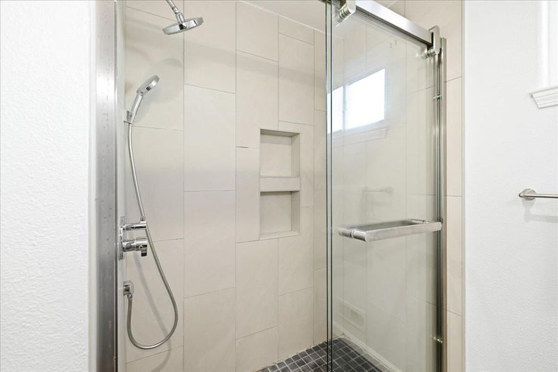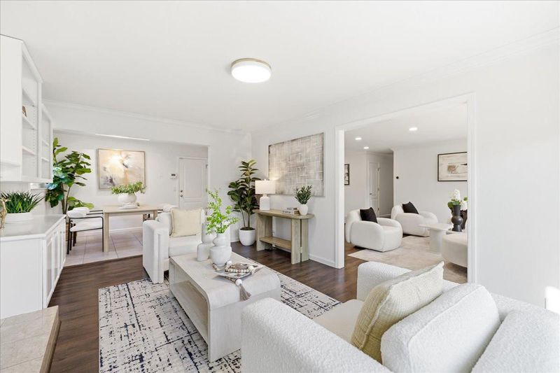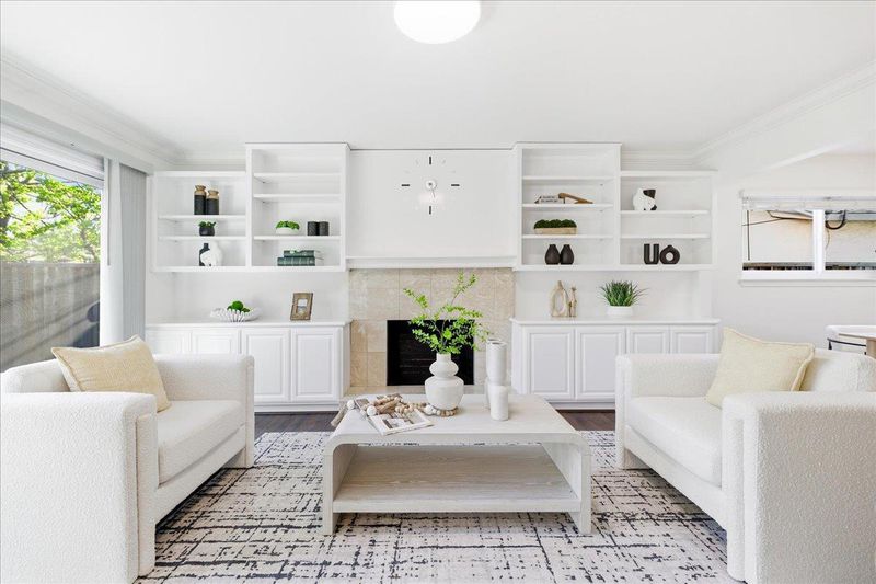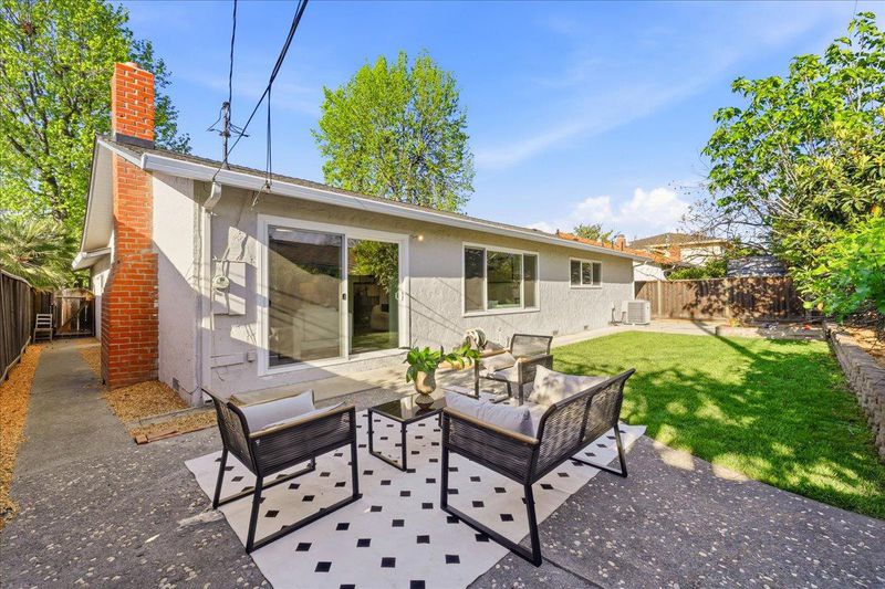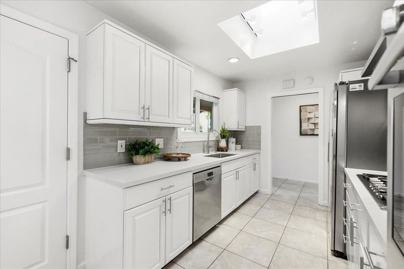 Beautifully updated single-story home minutes from top rated Cupertino schools, Santana Row & Apple Campus featuring a bright, light-filled interior & functional layout with luxury vinyl and tile flooring. Spacious living & family room with fireplace, built-in white cabinetry, recessed ceiling lighting, and large picture window. A sliding glass door provides seamless indoor-outdoor flow. Formal dining area enhanced by skylights with integrated track lighting. Bright galley-style eat-in kitchen showcases white shaker-style cabinetry, full tile backsplash, window above sink, and stainless steel appliances including refrigerator, cooktop, hood, built-in Bosch wall oven, & dishwasher. Spacious bedrooms offer built-in closets. Primary bathroom features a freestanding soaking tub, frameless glass shower enclosure with dual shower heads (rain + handheld), built-in recessed shower niches, linear drain, vanity, & consistent designer tile work. Additional highlights include a dedicated laundry area & thoughtfully designed living spaces throughout. Fenced backyard with lush lawn, concrete patio, raised planter area, & mature greenery, perfect for entertaining or relaxation. Low-maintenance landscaping & attached 2-car garage complete this move-in ready home.