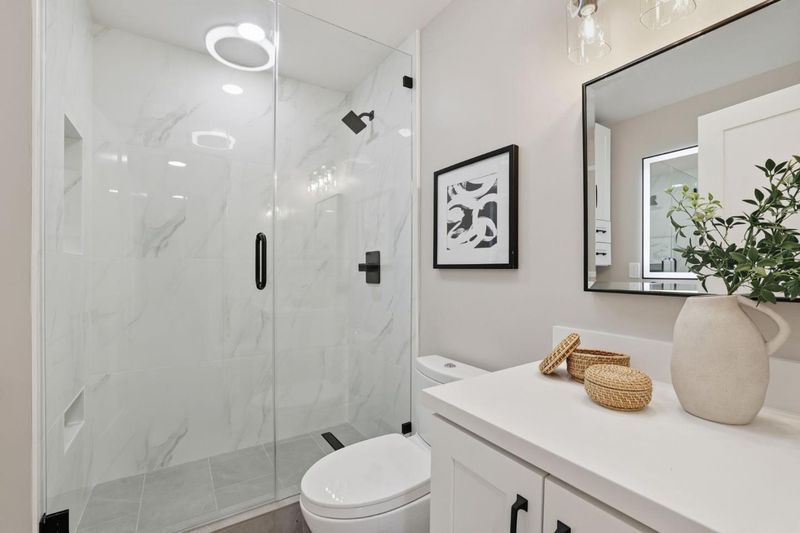 Beautifully remodeled 5-bedroom, 3.5-bath home tucked away on a quiet cul-de-sac in the highly desirable Almaden Country Club neighborhood. This stunning 2,790 sq. ft. residence on a 8,400 sq. ft. lot showcases exquisite craftsmanship and designer finishes throughout, including new luxury vinyl, porcelain, and marble tile flooring, custom Old-World wall texture, and premium Sherwin-Williams paint. The chefs kitchen features hardwood cabinetry, quartz countertops, a professional ZLINE appliance suite with 48" dual-fuel range, Miele dishwasher, pot filler, and a custom beverage center with dual wine and drink refrigerators. All bathrooms are completely remodeled with custom vanities, quartz counters, LED mirrors, glass enclosures, Toto toilets, and Bluetooth-enabled fans. Smart-home upgrades include LED lighting, Ring security, Baldwin smart locks, multi-zone Carrier HVAC, EV charger, and two solar systems (Sunrun & Enphase). Lush landscaping with Rachio irrigation and new drip systems complete this exceptional home. Top-rated Williams Elementary, Bret Harte Middle & Leland High schools. A true Almaden Country Club area gem!