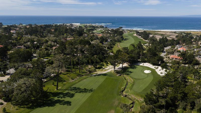 Perfectly positioned on the 8th hole of the Dunes Course at Monterey Peninsula Country Club, this down-to-the-studs renovation blends clean, modern design with warm, natural finishes. The home features three en suite bedrooms, radiant heated floors, solar power, and seamless indoor-outdoor living, all crafted with high-end materials throughout. The kitchen is both elevated and functional, showcasing Taj Mahal quartzite countertops, a large center island, custom cabinetry, designer lighting, and a professional range. It opens effortlessly to the main living spaces, creating an ideal layout for everyday living and entertaining. Rich wood tones paired with light, refined finishes give the home a timeless, coastal-modern feel. Spa-like bathrooms offer oversized walk-in showers, floating vanities, and backlit mirrors, bringing a true retreat-like experience to each space. Exposed beam ceilings and wide-plank flooring add warmth and architectural interest throughout. A welcoming private front courtyard sets the tone on arrival, while the backyard is designed for both relaxation and play, featuring a small putting green and outdoor fire pit, all set against the peaceful backdrop of the fairway. This is a rare opportunity in one of Pebble Beach's most sought-after golf course locations.
