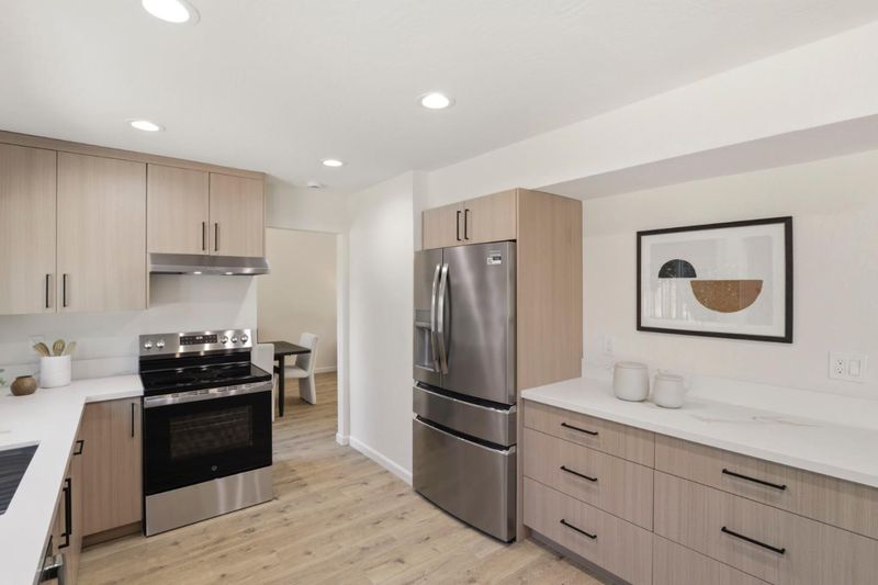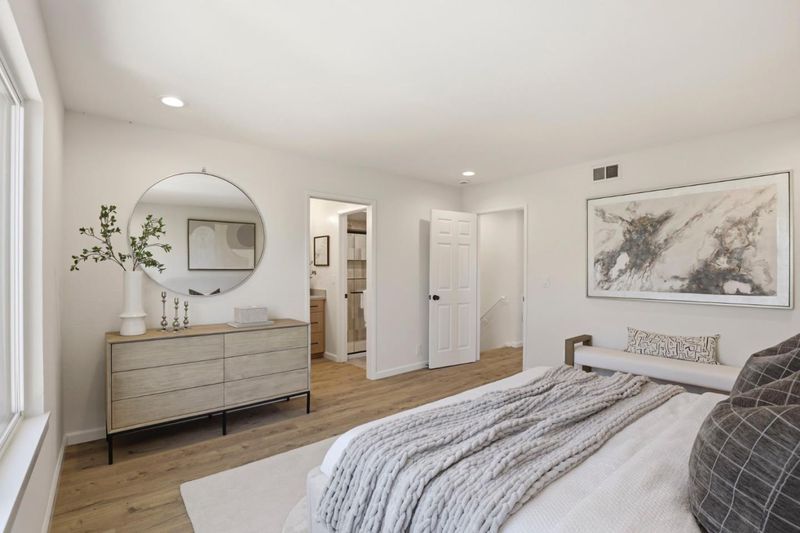 Welcome to this beautifully remodeled two-story home in the heart of Berryessa, offering 2,079 square feet of thoughtfully updated living space. Freshly remodeled for sale, the home features soaring vaulted ceilings and a light, bright interior with recessed lighting throughout. An elegant tile entry opens to a spacious circular floor plan designed for comfortable living and easy flow. The updated kitchen includes new cabinetry, quartz countertops, and an eat-in peninsula, along with brand-new stainless steel range, dishwasher, and refrigerator. Upstairs are four spacious bedrooms, including a primary suite with a walk-in closet. Bathrooms have been remodeled with new tile showers, vanities, fixtures, and faucets. Additional upgrades include new dual-pane windows, new laminate flooring throughout, fresh interior paint, and a new AC and furnace. A spacious laundry room with a pantry cabinet and an attached two-car garage add convenience. The private yard features lush grass, mature fruit trees, and generous outdoor space. Convenient to shopping, dining, Costco, all major freeways, and the Berryessa BART station!
