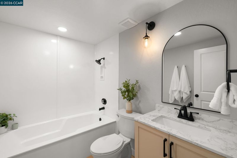 This beautifully renovated 4-bd,3-ba,1,972 sq ft home in the prestigious Twin Creek enclave of San Ramon is thoughtfully updated&designed w/modern sophistication&comfort.This exceptional residence features a fully renovated chef’s kitchen,updated bathrooms,wide plank luxury flooring,dual pane windows,designer paint colors,new cabinetry&appliances,updated lighting,new HVAC&dual living spaces.The chef’s kitchen is the heart of the home,showcasing premium appliances, generous storage&contemporary designer finishes.The great room encompasses the living,dining &kitchen spaces highlighted by soaring vaulted ceilings&natural light.The inviting family room offers a wood-burning fireplace&built-in desk area.A main-level bedroom& full bath provide ideal flexibility for guests or private office.The primary suite is a true oasis w/ spa-inspired en suite featuring custom shower, soaking tub, dual-sink marble vanity&three closets.The backyard retreat includes manicured landscaping,citrus trees,spacious deck w/trellis—perfect for entertaining.Residents enjoy access to community pool,tennis&basketball,award-winning schools&close proximity to San Ramon City Center,parks hiking&commuter routes.A rare opportunity to acquire a fully renovated home in one of SR's most desirable neighborhoods!Open S/S