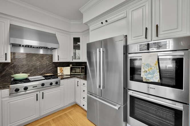- Cooktop - Gas, Countertop - Marble, Dishwasher, Garbage Disposal, Hood Over Range, Oven - Double, Oven - Electric, Trash Compactor