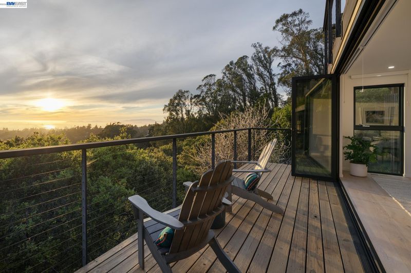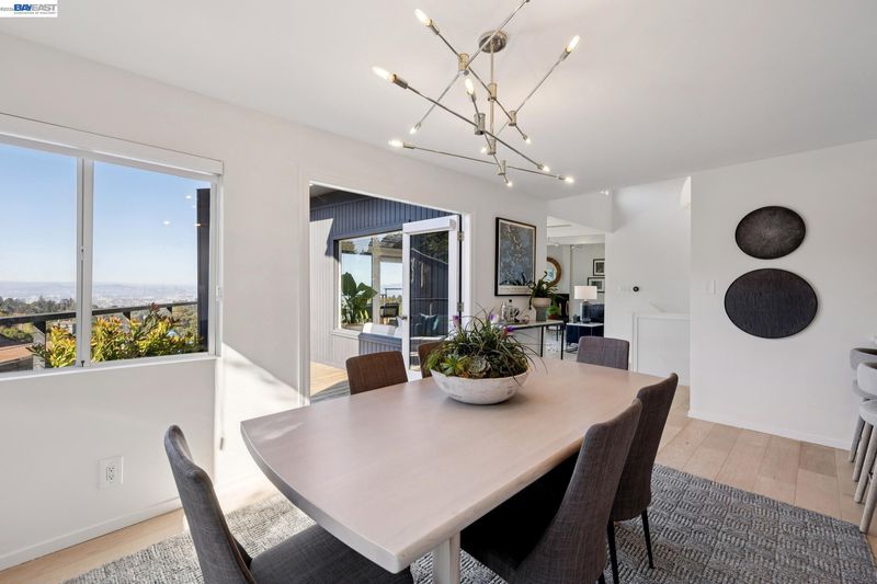 Breathtaking San Francisco, bay and canyon views with outstanding indoor/outdoor living are the backdrop to an exceptional life in this upgraded 3+BD/4BA Montclair home. This sophisticated 1929 SQFT home is light and airy, featuring floor to ceiling windows and la cantina folding glass doors. The sweeping views span from Mount Tam to the Golden Gate Bridge, from San Francisco to Oakland. The home’s dramatic open floorplan features an expansive deck, a beamed wood ceiling, fireplace, dining area, and a modern eat-in kitchen. The main floor is complete with a full bath and sunny bedroom with French doors onto a front patio surrounded by lush landscaping. Downstairs find a laundry room, full bath, and two more bedrooms, including a luxurious primary suite. The primary bedroom features a custom walk-in closet, chic ensuite bath with wet room, and private deck with spectacular views. Unwind in the hot tub admiring the entire SF Bay. This level also connects to a new full bath and bonus room with exterior access, ready as an office, exercise space, or playroom. A 2-car garage and ample storage offer convenience. Enjoy close proximity to Montclair village, public/private schools, and miles of trails to explore in the East Bay parks.
