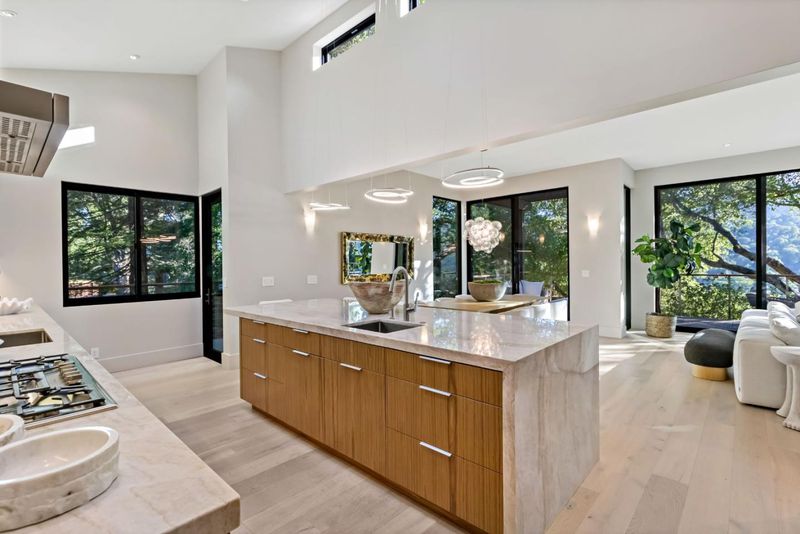 Completely remodeled in 2020, this exceptional Portola Valley Ranch home showcases stunning western views framed by a majestic oak overlooking rolling, verdant open space, creating a picturesque, tranquil setting. The dramatic living room is anchored by a stone fireplace wall and bathed in natural light, seamlessly connecting to the adjacent dining area with oversized glass doors that showcase the views and open to an expansive entertainment deck for indoor-outdoor living. The chefs kitchen features Quartzite countertops, a waterfall island with prep sink, wine cooler, bar seating, Thermador appliances, sleek cabinetry, and a full pantry, flowing effortlessly into the main living spaces. The main level also includes a luxurious primary suite with fireplace, access to deck, and spa-like bath, a stylish den with fireplace, designer powder bath and a well-appointed laundry room. The lower level offers a spacious family room, a private ensuite bedroom, two additional bedrooms, a hall bath, and a second laundry room, providing flexible living and guest space. Enjoy resort-style amenities exclusive to the Ranch community, including 2 pools, 3 tennis courts, fitness center, Ranch House, community garden, vineyard, orchard, duck pond, dog park, miles of scenic trails, top-rated schools.