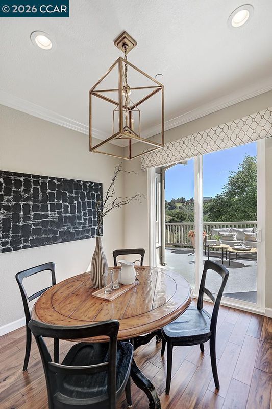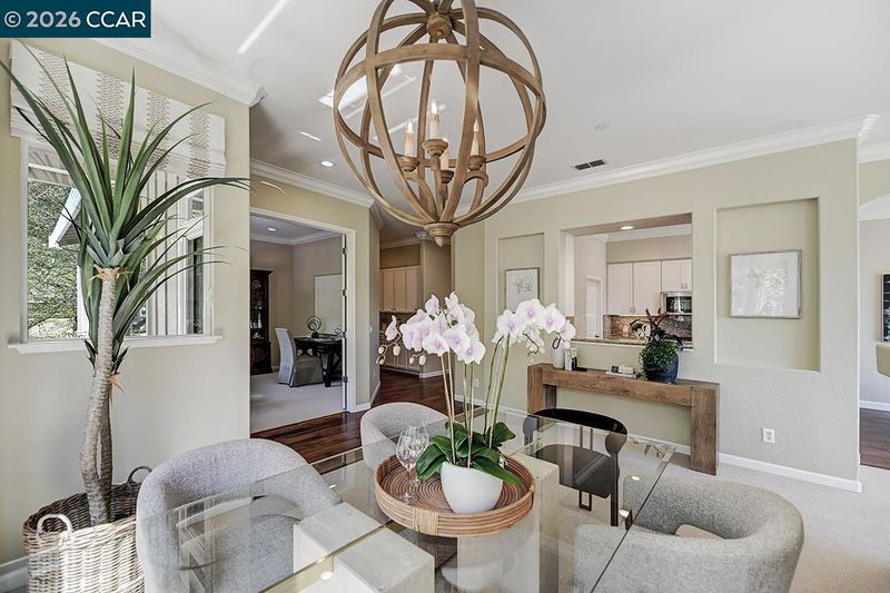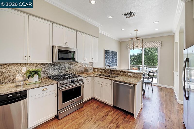 Perched to capture sweeping vistas of Mount Diablo and the surrounding hills, this beautifully appointed two-bedroom, two-bath plus den condominium offers a rare opportunity to own a premium residence in an exceptional setting. With no neighbor to the south, its sought-after southeast-facing orientation fills the home with natural light from morning through afternoon while showcasing panoramic views from nearly every main living space, creating a sense of privacy and tranquility seldom found in condominium living. Thoughtfully remodeled with quality craftsmanship and designer finishes, the open floor plan seamlessly connects the living, dining, and kitchen areas for effortless entertaining and everyday comfort. A spacious den provides flexibility for a home office or retreat. The serene primary suite features an updated en-suite bath and generous closets, while the guest bedroom and secondary bath offer comfort and style. Hardwood floors, crown molding, custom window treatments, and an attached garage with EV charger complete this exceptional home.